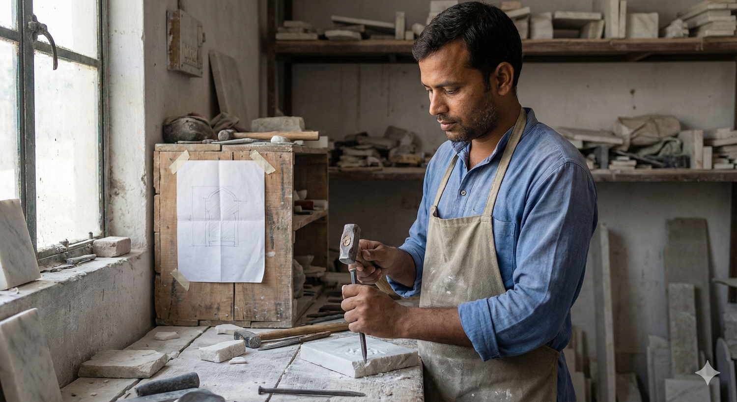 Each creation begins as a quiet sketch — a vision of grace, symmetry, and soul. Only once the design feels perfect does the artisan bring it to life, sculpting marble into timeless decor.